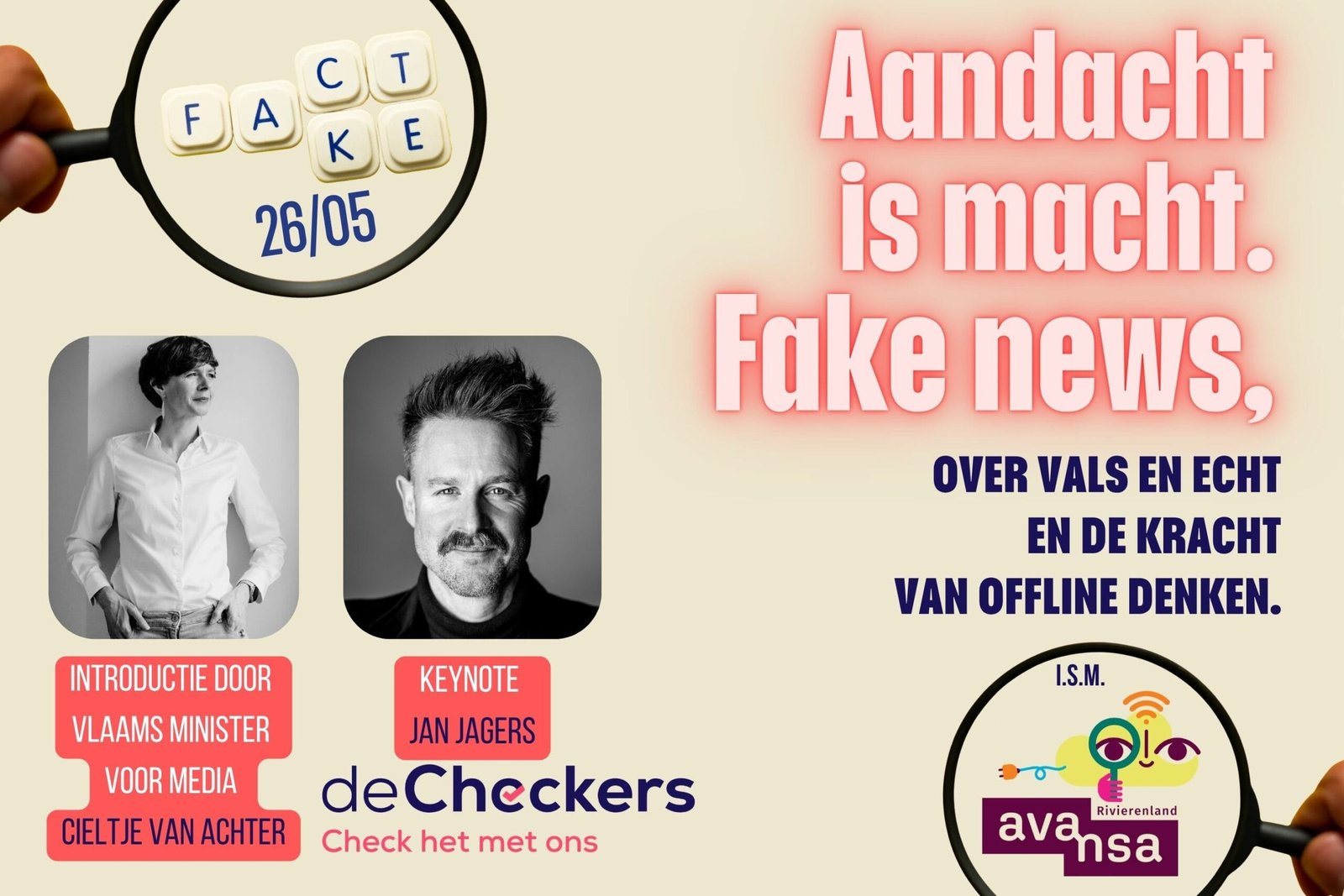 Een sterk initiatief om hierin te sensibiliseren is deCheckers. Dit is een Vlaams platform waarop alle factchecks die aan internationale kwaliteitsvoorwaarden voldoen, samenkomen. Zo bieden deCheckers je één plek waar je terechtkan om factchecks te vinden, maar ook om tips te sturen. Ben je een taalprofessional, een copywriter, storyteller of leerkracht? Ben je actief bezig en gebeten door communicatie/berichtgeving/marketing? Of ben je gewoon geïnteresseerd in hoe we best fake news detecteren en er mee omgaan? Kom dan zeker luisteren naar de ervaringen van Jan Jagers en zijn deCheckers – community van experten (een greep uit de partners: VRT nws, Knack, Factcheck. Vlaanderen e.a.).